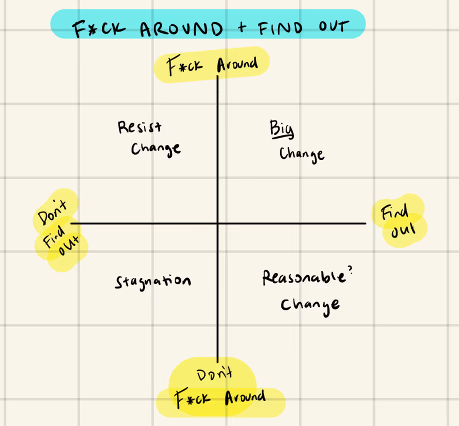 One of my favourite mental models of 2022 is the “fuck around and find out” matrix, invented by Venkatesh Rao and popularised by the marvellous Kayla Scanlon.