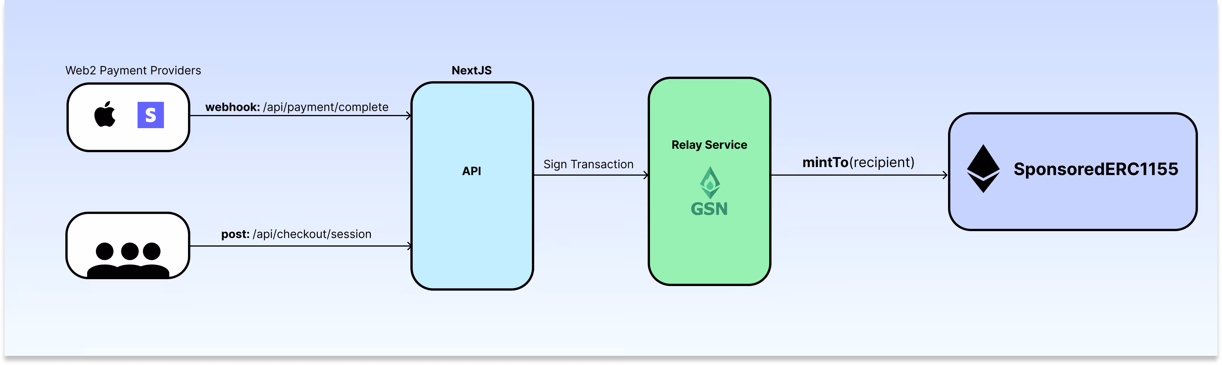 - To provide users with a familiar check-out experience, Reddit opted for traditional Web2 payment providers like Stripe & Apple pay, which upon fulfillment, will call a web-hook in their service’s API to trigger an on-chain mintNFT call, crediting the requester’s account with the NFT.