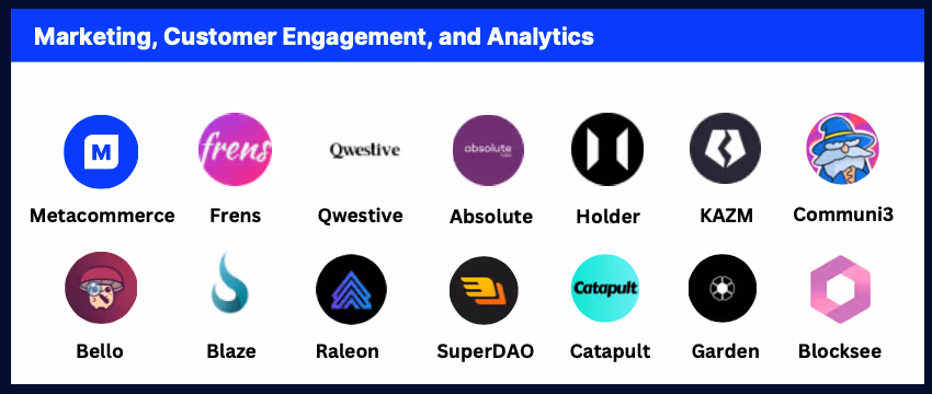 Today, there are over 125+ startups working on solutions to empower some of the world’s most innovative companies, ecosystems, and brands as they navigate Web3 growth. From analytics and identity to CRM the software category is diverse.